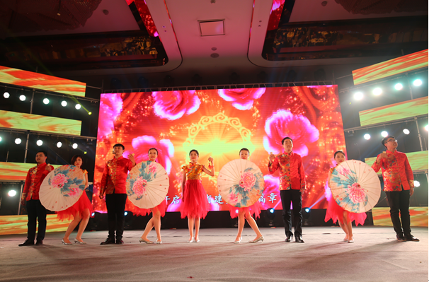 此次演出內容豐富多彩,有舞蹈、小品、音樂快板、評彈、花燈戲、漢服表演等,真可謂是一場視聽盛宴。直屬公司一曲青春、歡快的歌舞《點亮未來》拉開了酒會的序幕。江西萬載瑞辰的花燈戲《萬載古城千年長》帶著濃郁的地方特色,南京同力建設集團的《剛好遇見你》柔美動聽,江蘇交工集團小品《佳期》樸實、細膩,海外公司動感爵士舞《Instrction》熱情奔放,北京分公司歌舞《跟我去旅行》灑脫、大氣,山東分公司音樂快板《筑夢》別致新穎,上海分公司歌舞《OK,上海》反映新舊上海人的精神面貌,徐州華都建設《水月漢韻》雍容華麗,集團機關的評彈《啟航》唱出了江蘇省建60年的變遷及新機遇、新征程中再啟航的決心,集團總裁仇天青和資金運營中心周婕男女生表演唱《那又怎樣》激情飽滿、深情并茂。酒會在泰州華澤置業(yè)舞蹈《盛世省建》中落下帷幕。